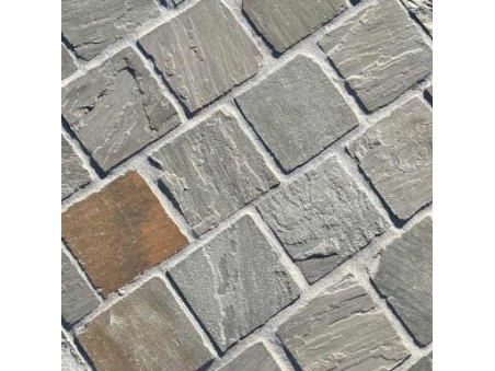 Avec cette épaisseur, ces pavés deviennent carrossables. La finition est clivée et les pavés sont généralement scellés sur mortier.