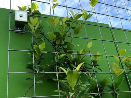 Support de plantes grimpantes et volubiles en acier galvanisé, avec plots de fixation afin de décaler le support de la surface ou il est fixé.